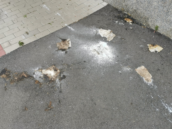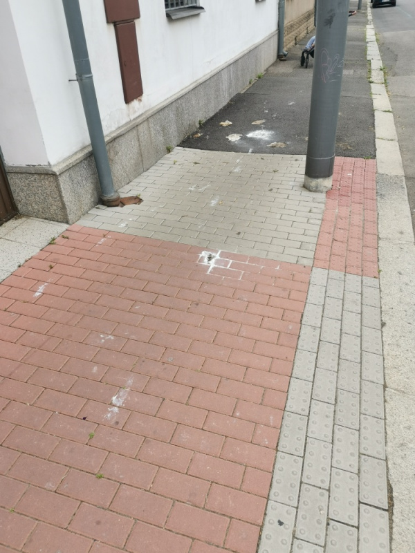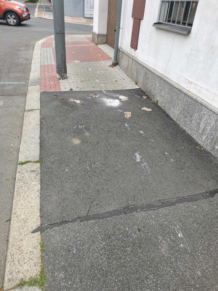Jiz mesic je pred bilym rohovym domem na krizeni ulic Za Vack9vem a Na rovnosti nejaky "kekel" rozslapany po chodniku, ze se to musi obchazet po silnici. Navic uz to nekdo rozlapal okolo. Behem uklidu ulic na konci kvetna to nezmizelo, asi braoi jen silnice. Chtelo by to vzut asi tlakovkou.
