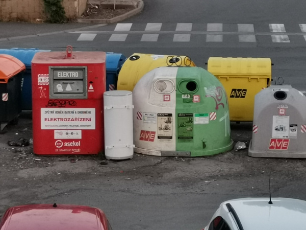 Odlozeny bojler u sbernych popelnic. Cistici ceta od AVE to neodvezla.