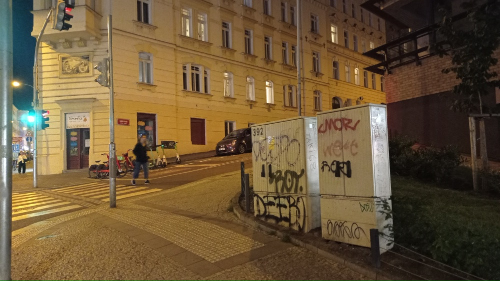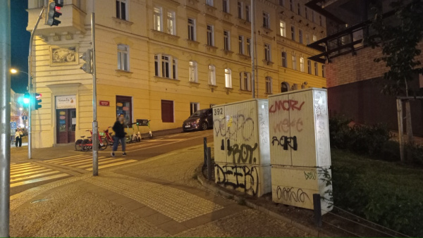 Na křižovatce Seifertova x Krásova se nachází dvojice posprejovaných rozvodných skříní tamních semaforů číslo 392.