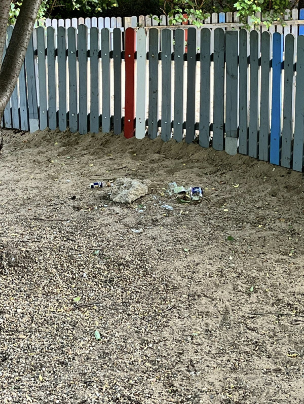 Rozbite sklenene flase okolo detskeho ihriska Lupcova