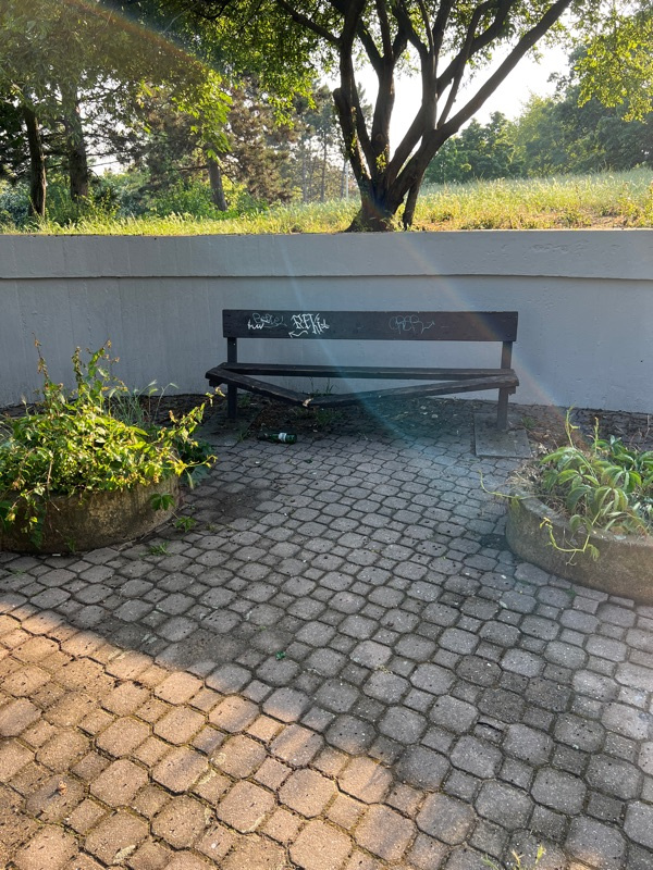 Polamana lavicka v parku na prcich