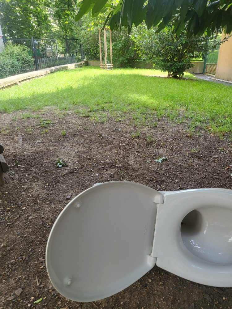 WC Míša v trávě za elektrorozvodnou ve VB Radhostska