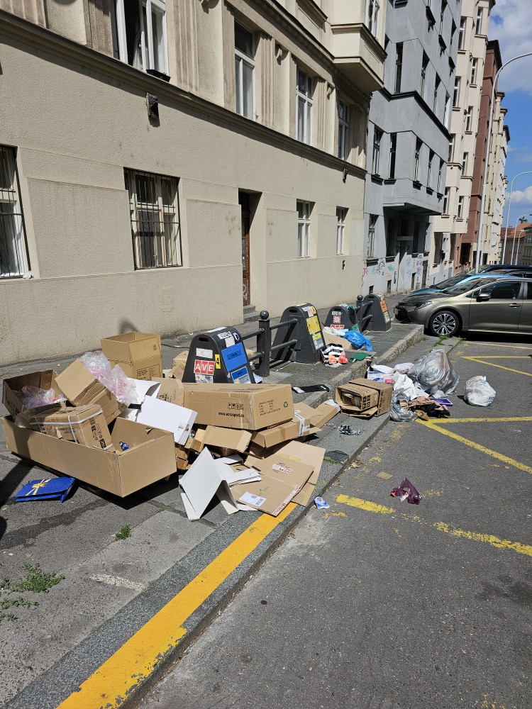 děkujeme za Váš podnět.Nepořádek uklidí firma AVE v pravidelných svozech odpadu.