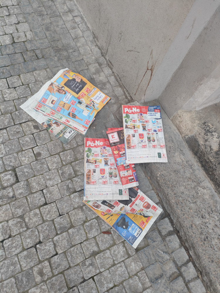 Dobrý den, na Husitské ulici Kaufland rozhazuje stohy letáků které nikdo nechce před dveře domů, je to u většiny domů v oblasti kolem křižovatky s Prokopovou :(