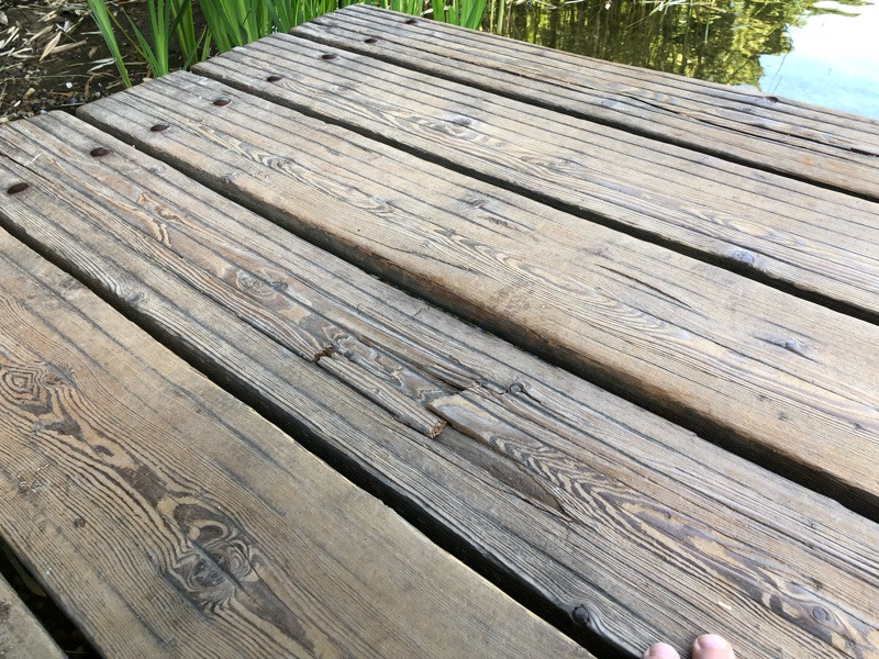 Prolomená laťka na molu u ryb a želv, hrajou si tu děcka, tak ať tam nějakému nezůstane noha.