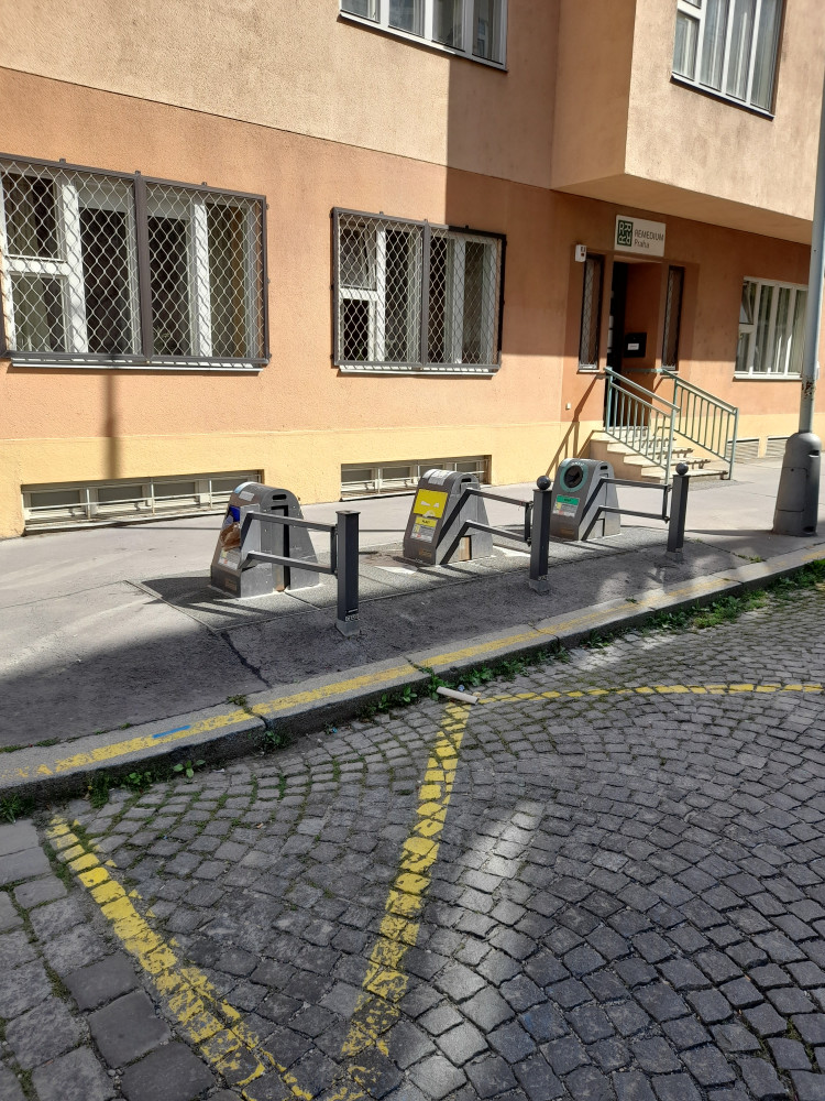 Odpadky okolo kontajnerov na triedený odpad. Plno. Vietor to môže roznášať po ulici.