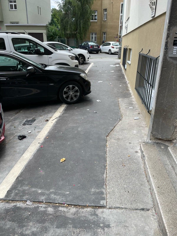 Chodnik pokryty odpadky a exkrementy, cela Viklefova mezi Biskupcovou a Jeseniovou by snesla castejsi uklid, ale roh Viklefovy a Jeseniovy je dlouhodobe nejhorsi (na obou stranach Viklefovy).