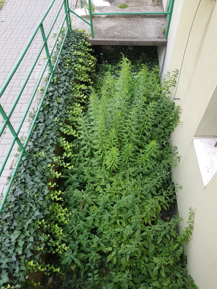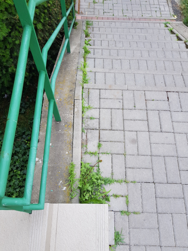 - verejne prostranstvi pod schody pred domem Konevova 109 je zanesene plevelem cca 1 m vysky