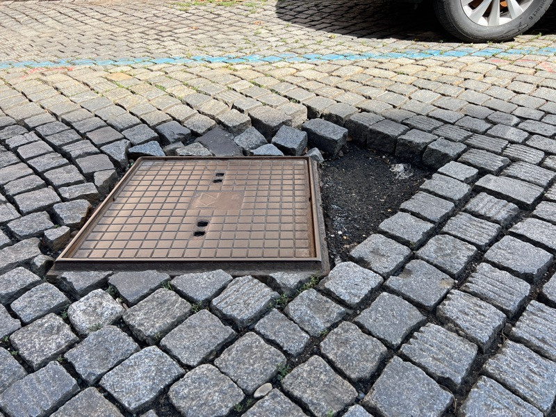 Dle TSK je problém WZF4YWLR vyřešen, zřejmě administrativně. Fyzicky díra v komunikaci Slezská stále existuje, za 7 týdnů od nahlášení se pouze zvětšila.