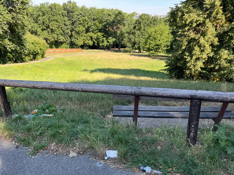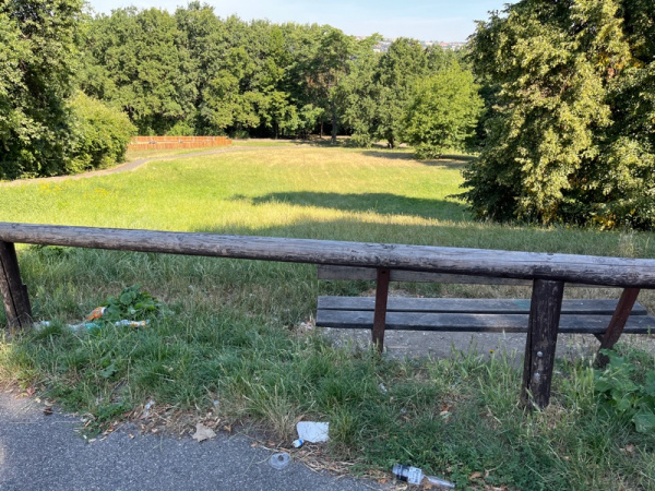 Rada bych navrhla umisteni odpadkoveho kose k lavicce v parku u vchodu do arealu Prazacky.