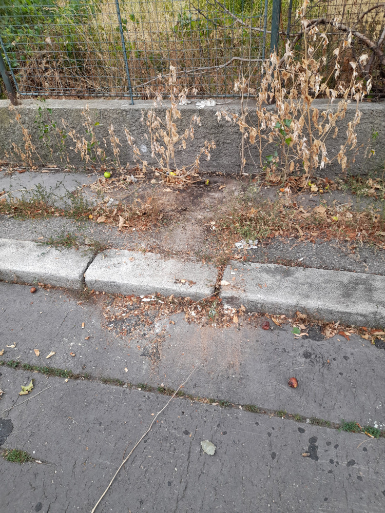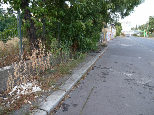 V Ulici u nakladoveho nadrazi mezi plotem a obrubnikem je