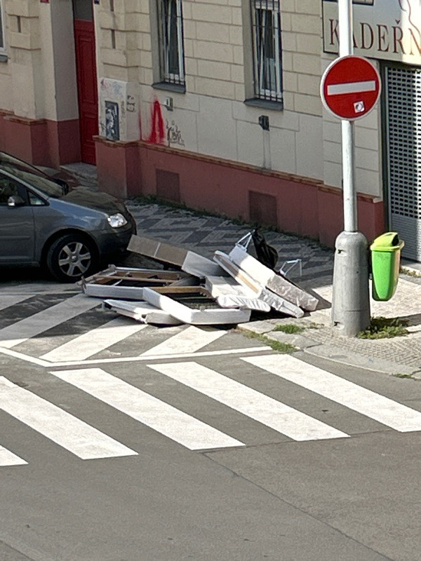 Vyhozene kusy nabydku blizko prechodu pro chodce nebezpeci urazu pro chodce