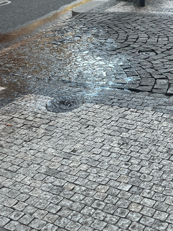 Teče voda z hydrantoveho nástavce. Hned u zastavky Tachovske namesti