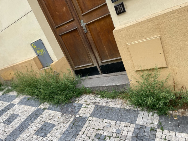 Přerostlý plevel do vchodu domu, při vysokých teplotách silný zápach. Žádáme o odstranění. Lipanská 835/3
