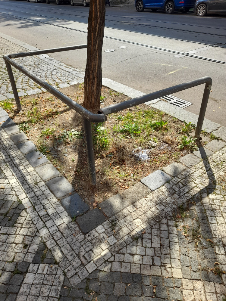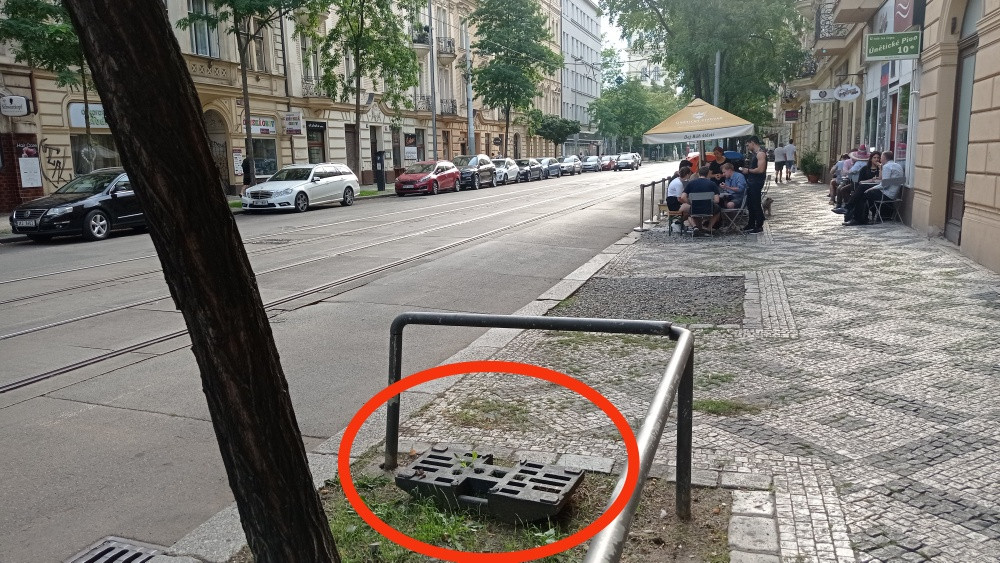 V ulici Korunní je u lampy 302 649 zapomenutý podstavec po přenosné DZ.