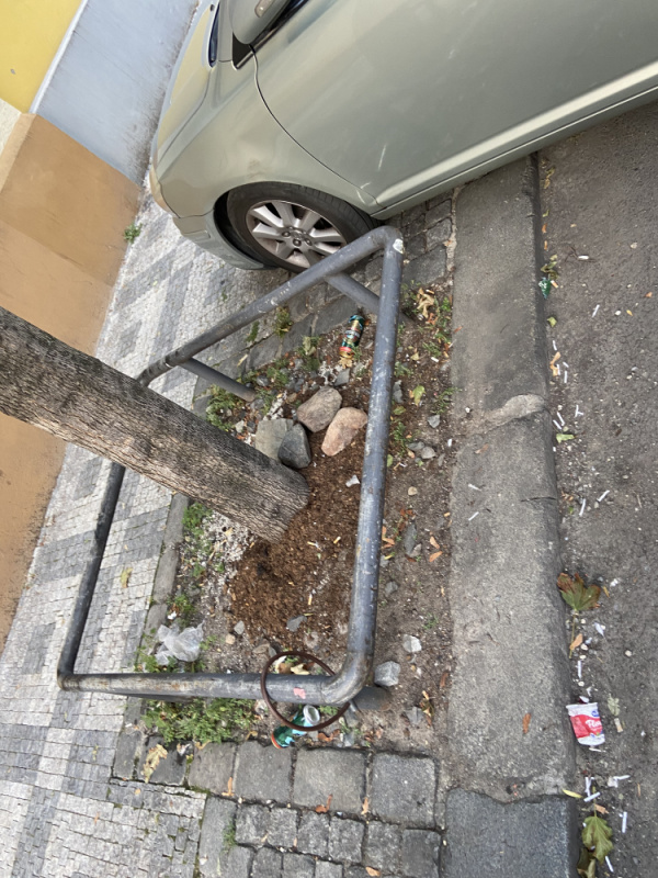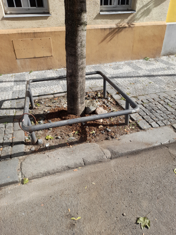 Neporadek v ulici kolem stromu