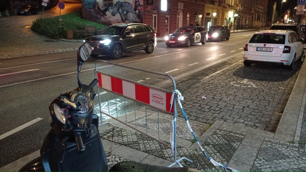 Na křižovatce Husitská x Trocnovská se nachází zapomenutý kus přenosného zábradlí.