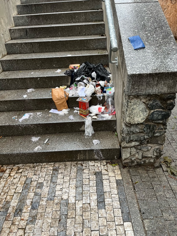 Vysypane odpadky na schodech k vitkovu