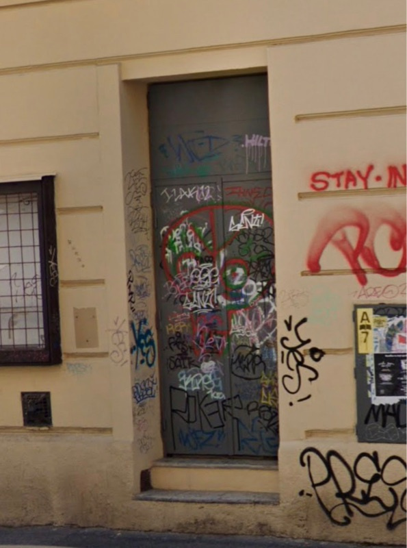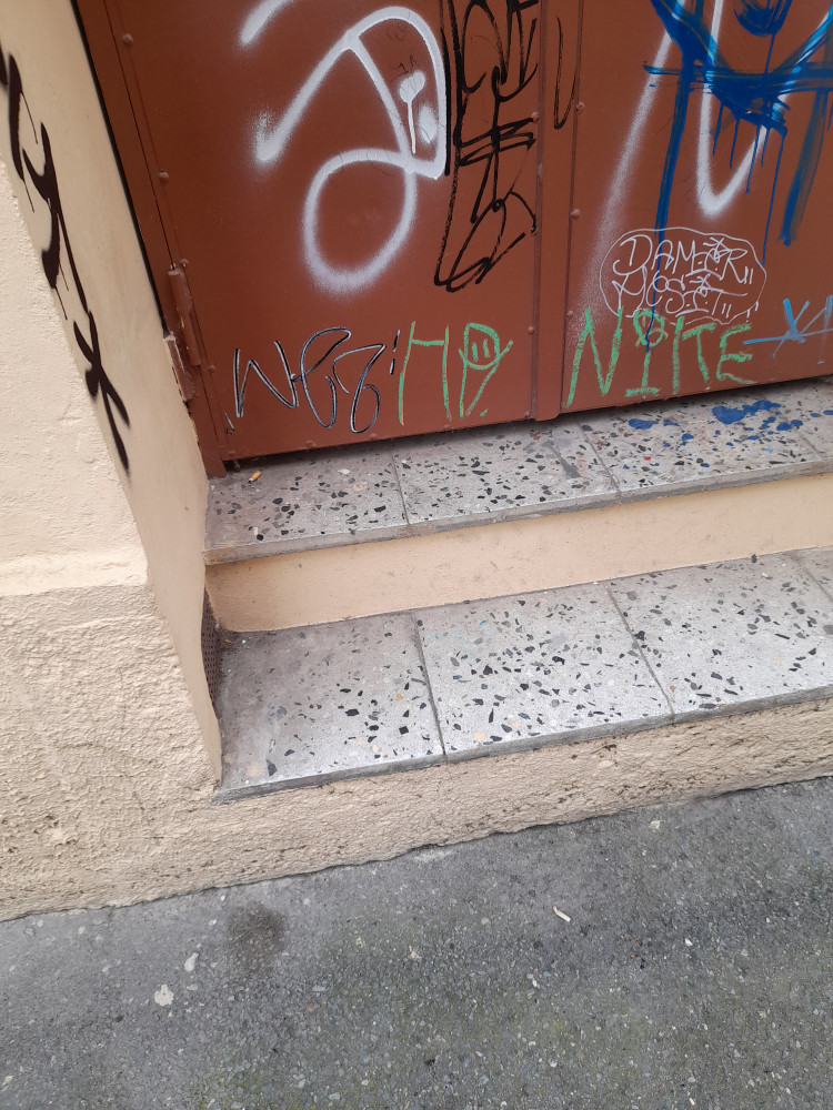 Injekční stříkačka na schodech (zřejmě vstup k trafo stanici)