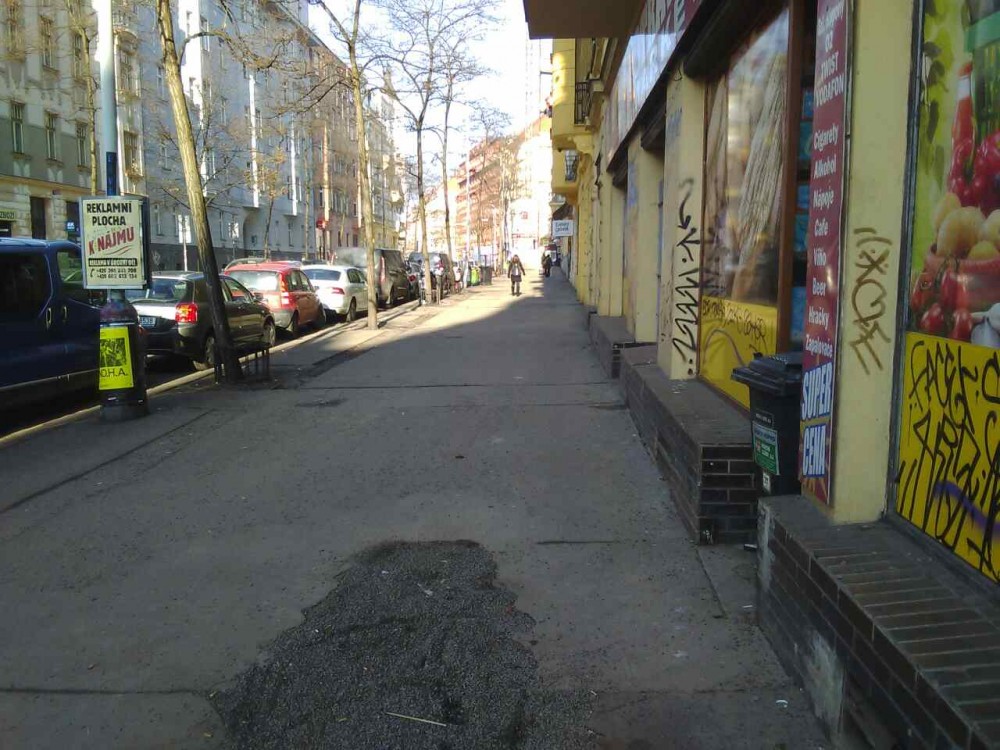 Psí exkrementy u stromů v úseku mezi Zvonařova a Ondříčkova.