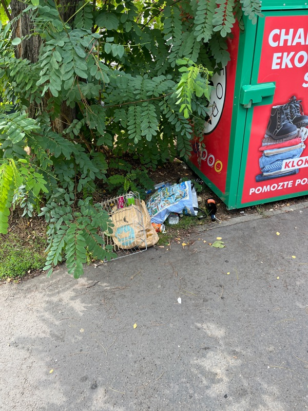 U kontejnerů na textil je pohozený odpad