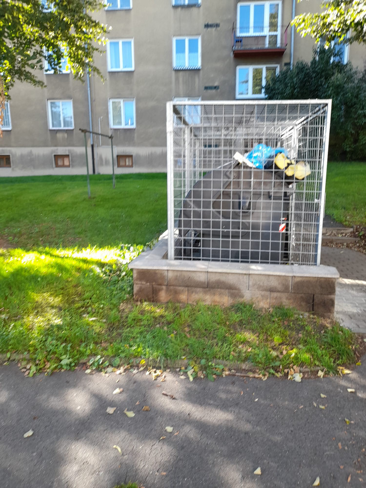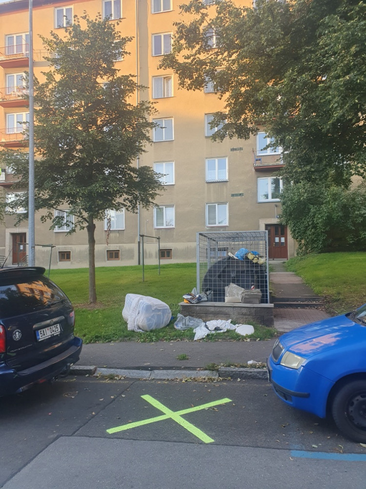 nepořádek okolo kontejnerů.Luční ulice, naproti Sanatoriu sv.Anny