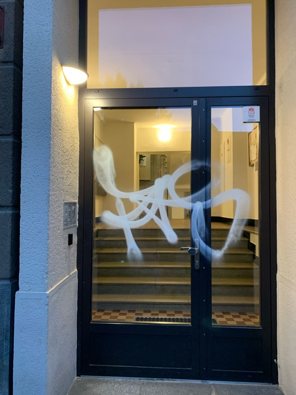 Bylo by prosím možné zaslat někoho na odstranění grafitů? V noci nám zde řádil vandal. Biskupcova 57.