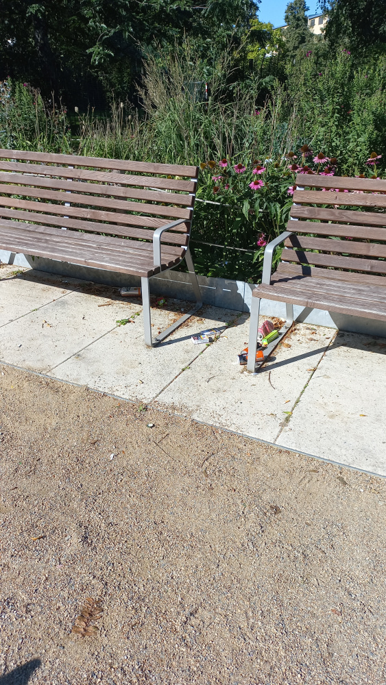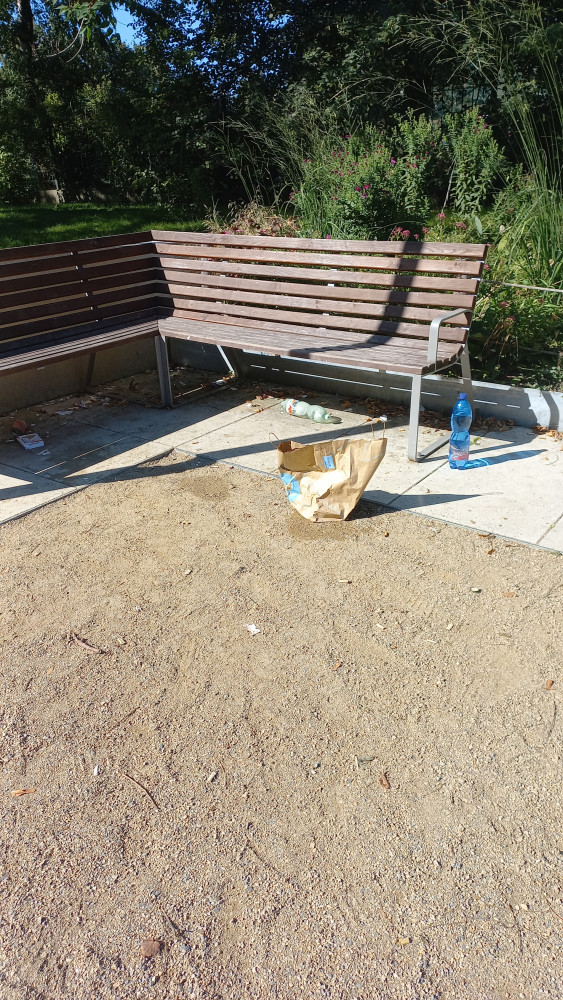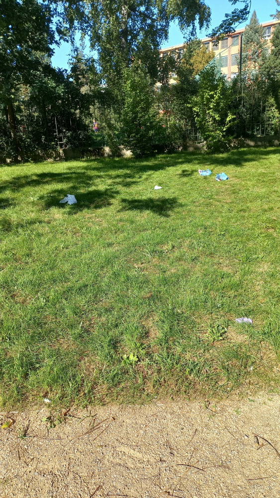 Nepořádek (papíry, lahve, pozůstatky jídla) po celém parku u Knežské louky. Je to na více místech po celém parku, na lavičkách, na trávě, i v květinových záhonech. Děkuji!