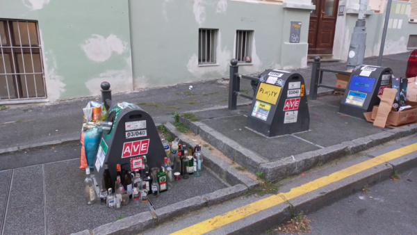 Přeplněný kontejner na sklo (už od čtvrtka a svoz je označen až další pátek, proto hlásím)