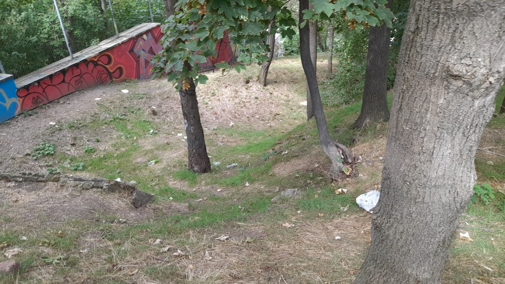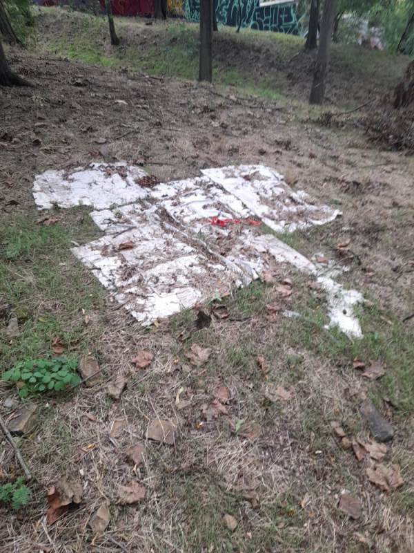 Vrch sv Kříže - svah pod psím hřištěm- stanova plachta ..... dal jsem se neodvažila a rovnou uklidte za kolegu ten nepořádek okolo propustě