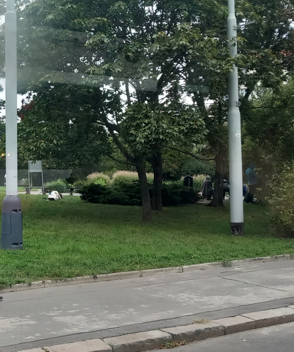 V parčíku na konečné bus zastávky č. 207 stále nocují bezdomovci, krmí holuby (přiživí se i nějaký potkan) a to od ranních hodin. Odpoledne zde mívají celé "hody" a podle toho to tam taky vypadá. Parčík se mění na území hrůzy.