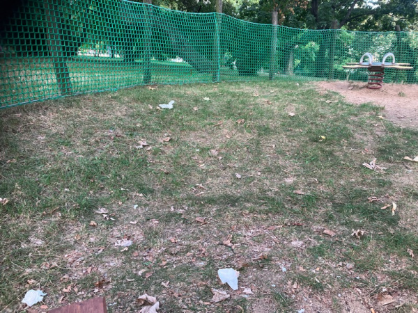 Odpadky rozhazene na hristi - piskoviste Vitkov