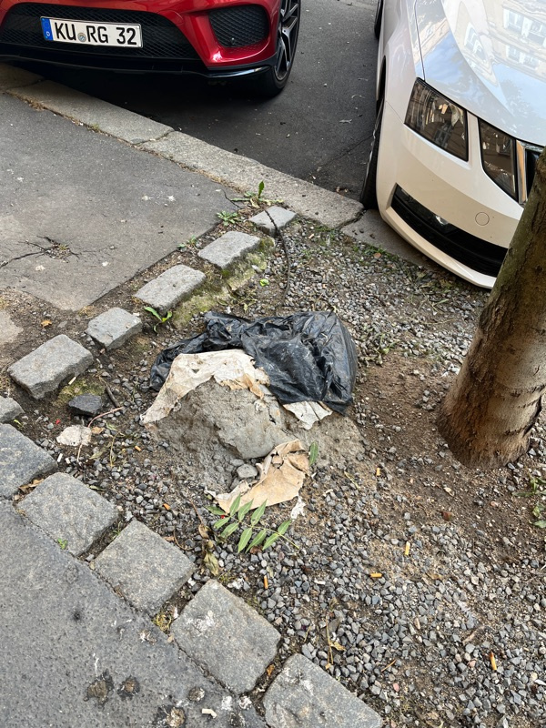 Vysypany pytel s cementem u stromu