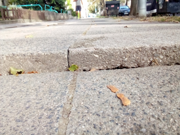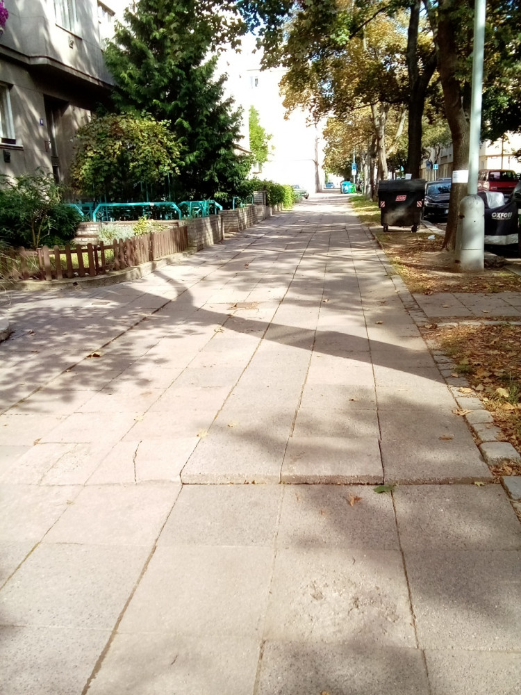 vyčnívající dlažební kostky a kanál , komplikují jízdu s kočárkem, aby o ně někdo nezakopl, Biskupcova 79