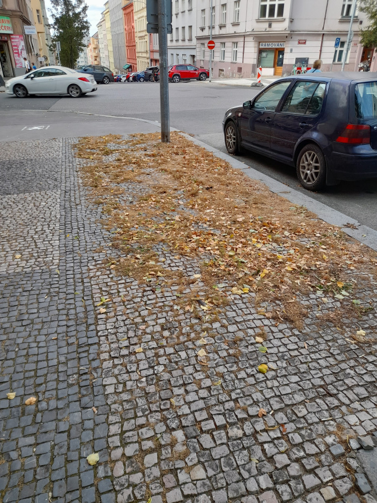 Zatracený chodník v sudomerske ulici na rohu s lucemburskou