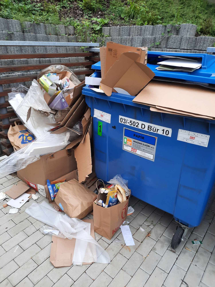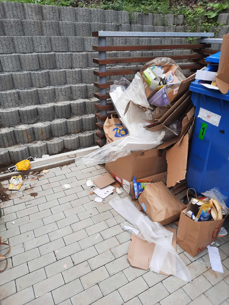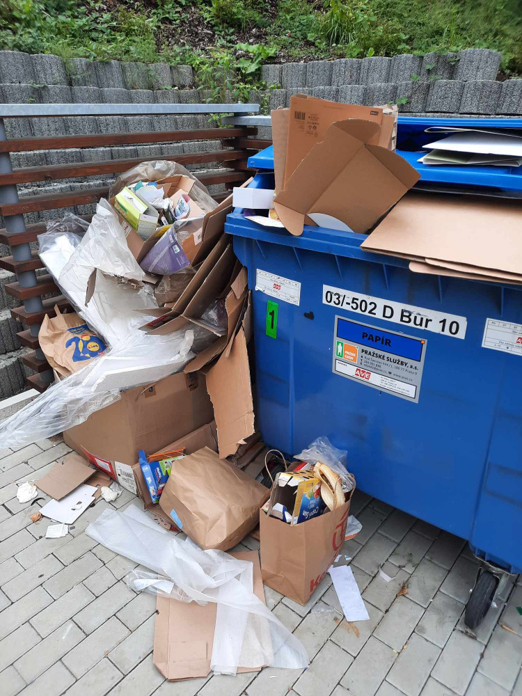 Dobrý den, prosím o úklid nepořádku kolem popelnic v ulici Dagmar Burešové. Děkuji