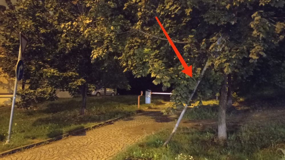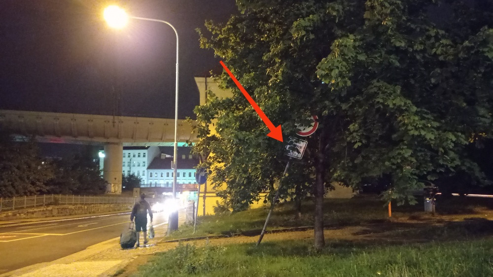 V ulici Trocnovská se u lampy 300 399 nachází ohnutá tyč DZ.