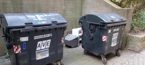 Prosím o úklid kolem kontejnerů na směsný odpad ve dvoře domu Soběslavská 35.