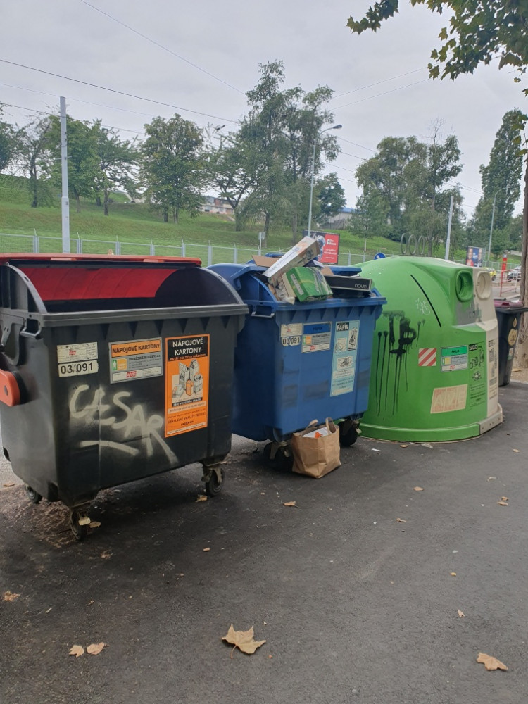 nevyvezený papírový odpad před domem Koněvova 235
