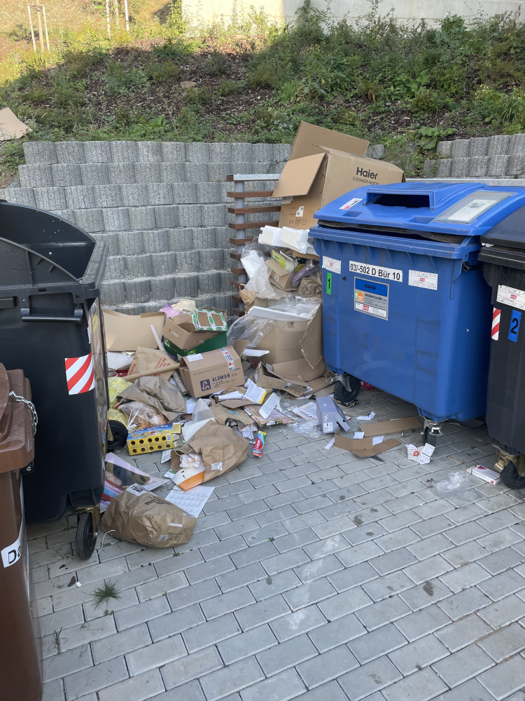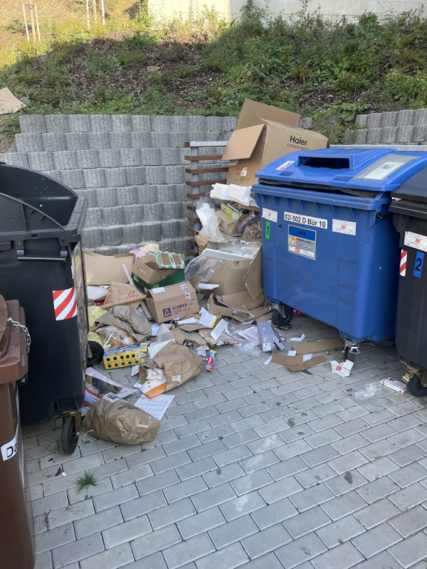 Neodvzenie papieru, okolo triedenia papieru, povaluje sa cez celu oblast kde su kontajnery