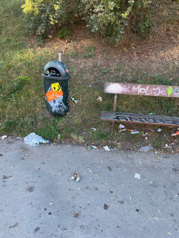 Přeplněný koš a nepořádek kolem