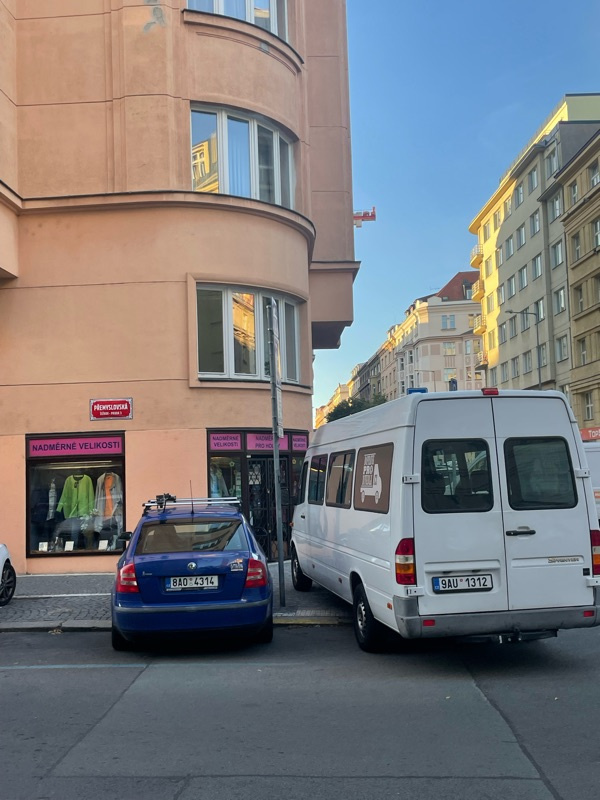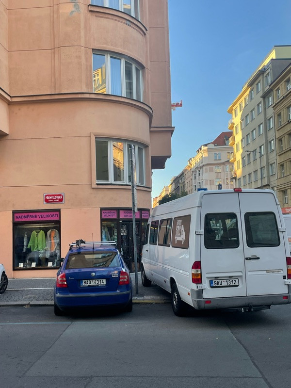 Dobrý den, rádi bychom poukázali na opakovaně stojící velký automobil na nevhodném místě, kde se přechází a znemožňuje výhledu:-(