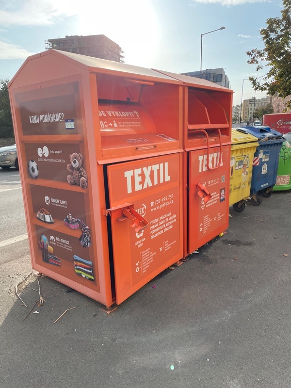 Oba kontejnery na textil mají už delší dobu vylomené zámky.