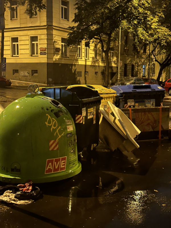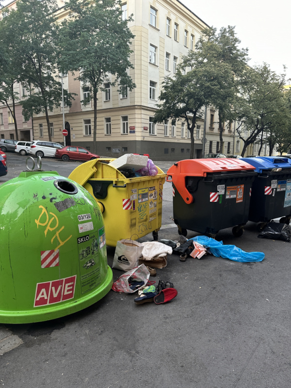 bývam na Žerotínova 41. Tesne pred vchodom máme umiestnené kontajnery na triedený odpad. Bohužiaľ je pri nich vždy bordel, pohádzané veci, ktoré tam ani nepatria. V období jesene - jari, kedy býva často vietor a dážď, máme odpadky odfúknuté až pred vchodom. Nemyslím si, že je chyba v tom, že by sa kontajnery nevyberali často. Ide o to, že ľudia kladú veci na vyhadzov vedľa kontajnerov a potom nám vzniká okolo vchodu bordel a nečistota (kvôli vietru sa bordel rozfúkne až k nám).