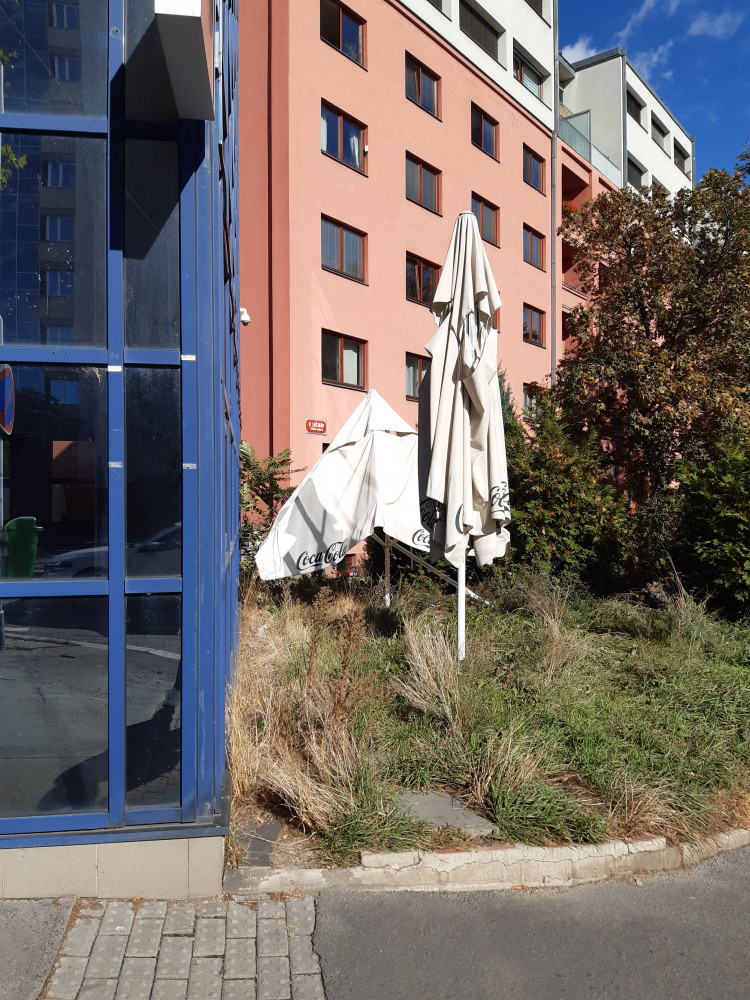 Prosím o odklízení nefunkčních slunečníků, nikomu nepatří, při vichřici můžou někoho zabít.