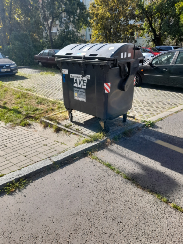 Odložené odpadky u kontejneru na směsný odpad Hartigova 1191/109 (dostupné z ulice Nad Ohradou).