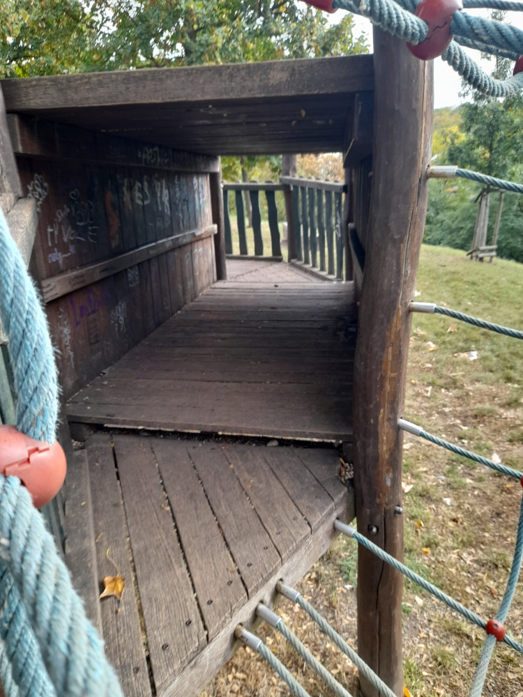 Dobrý den, opět dětské hřiště pod velkou klouzačkou. Někdo každou noc přespává v tunelu a nechává po sobě nepořádek.