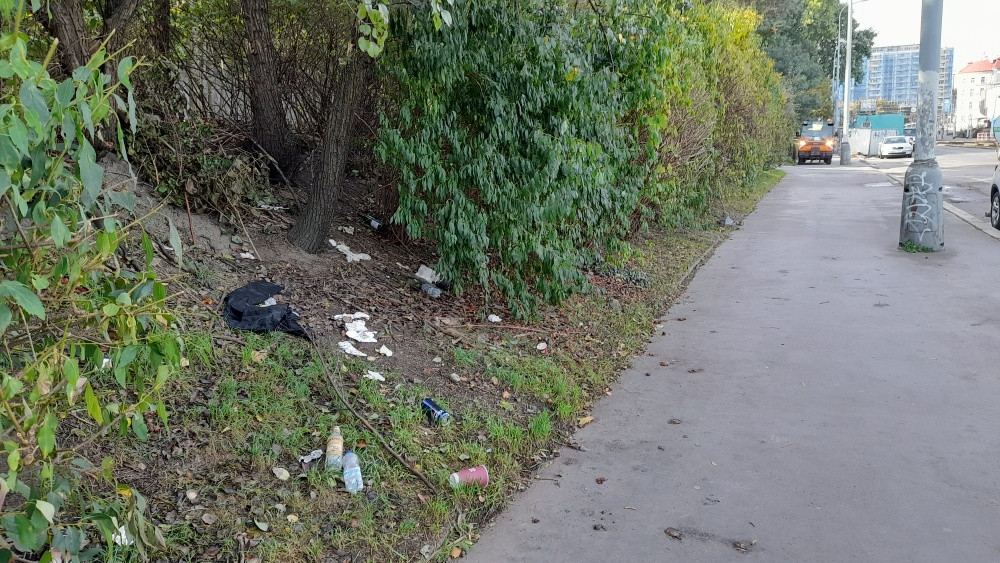 nepořádek ve svahu na Olsanske ulici- viděno z chodníku