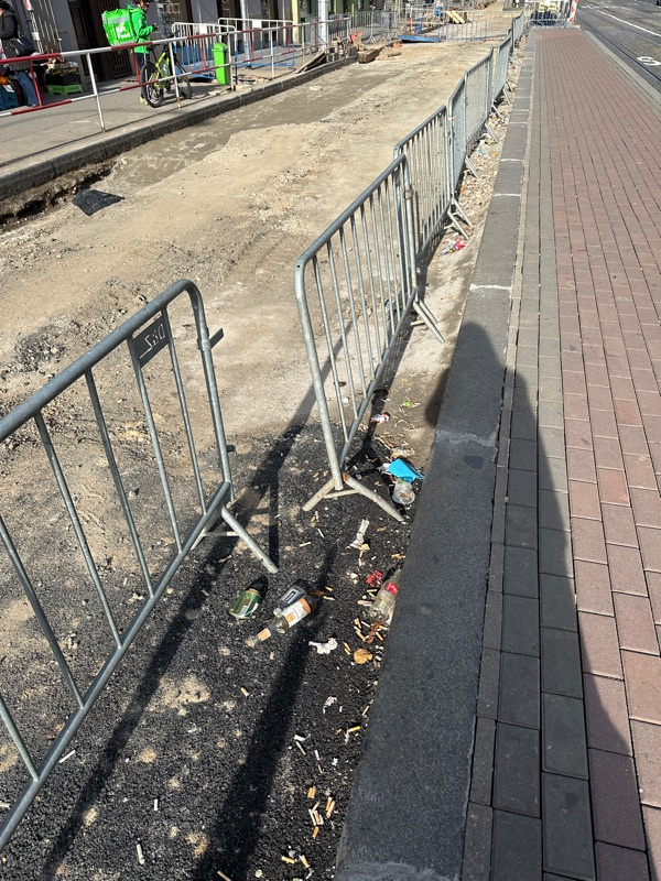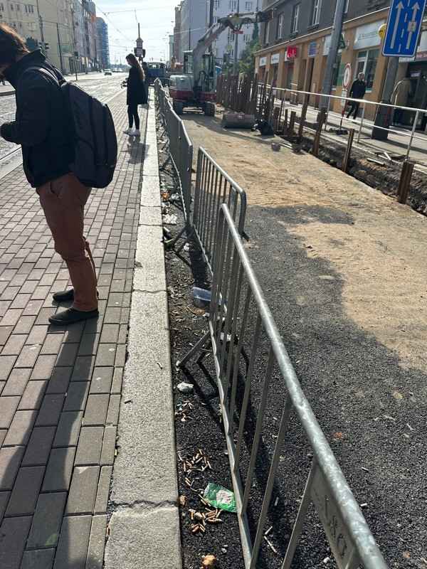 v těchto mistech probíhá rekonstukce tramvajové zastávky a úklid nepořádku zajištuje stavební firma.
