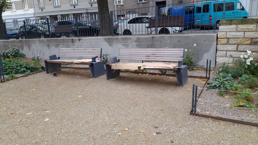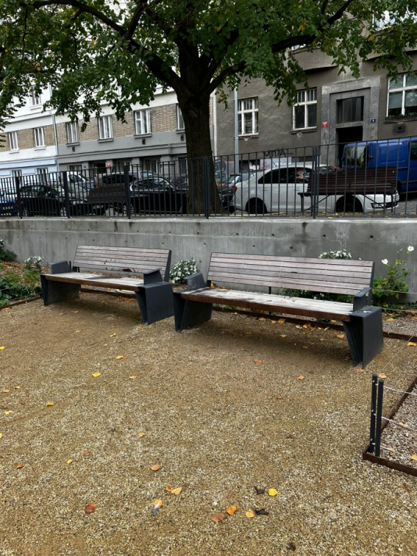 krabice ne lavickach na Žižkově náměstí